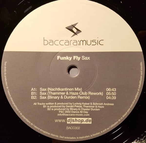 | Tracks | A: Sax (Nachtkantinen Mix) B1: Sax (Thammer & Haze Club Rework) B2: Sax (Binary & Durden Remix) |